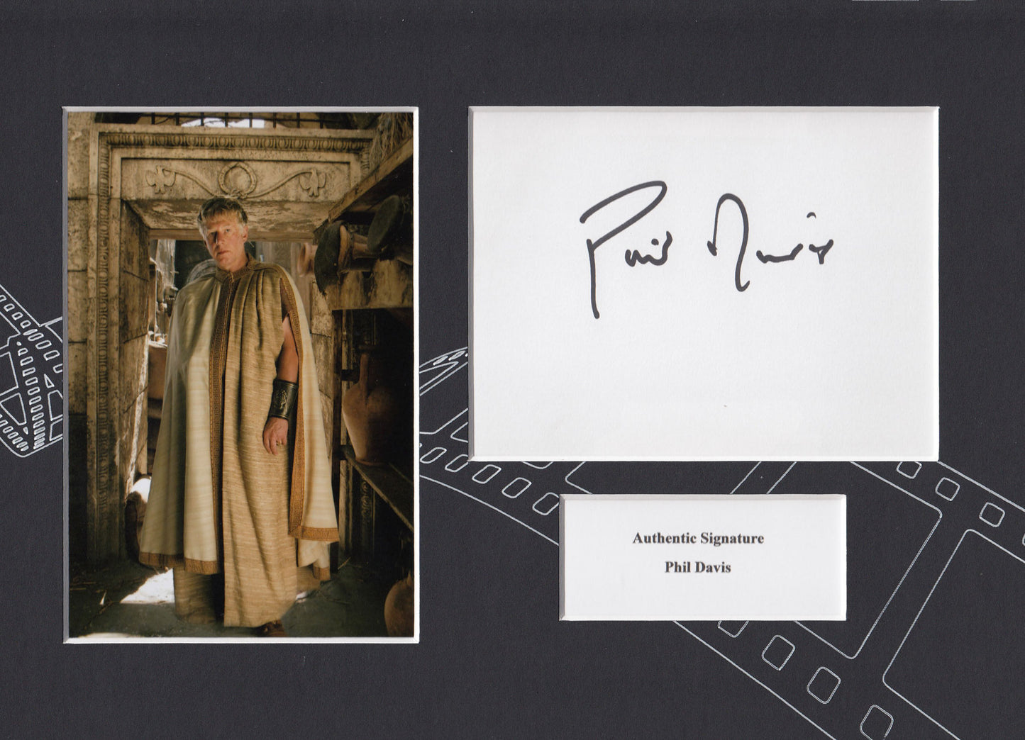 Here we have a personally HAND SIGNED index card by the actor Phil Davis, which has been professionally mounted into a A4 size photo display.