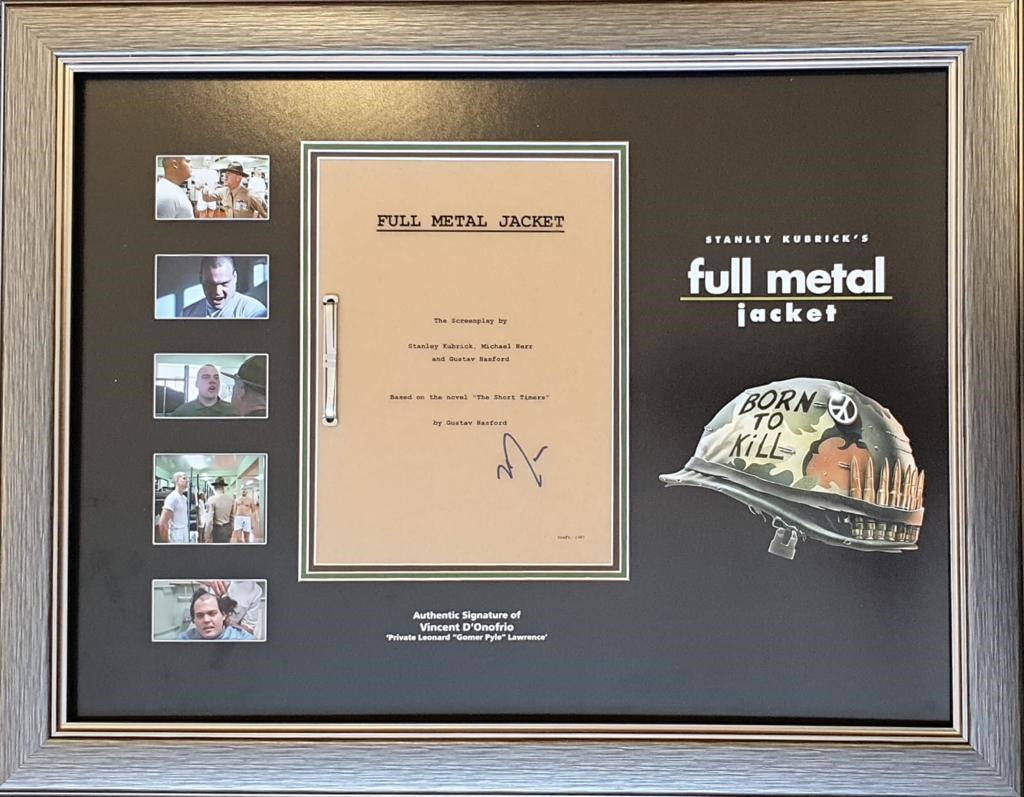 Here we have a replica script page from the classic film Full Metal Jacket, which has been personally HAND signed Vincent D'Onofrio.
