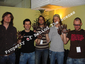 This is an original ink hand print of the band Embrace. These hand prints are on artist card and have also been personally signed by the band. You will also receive along with the inked hand print a photo of Embrace with the ink on their hands.